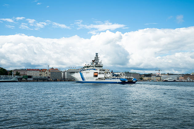 Bevakningsfartyget Turva utanför Salutorget.