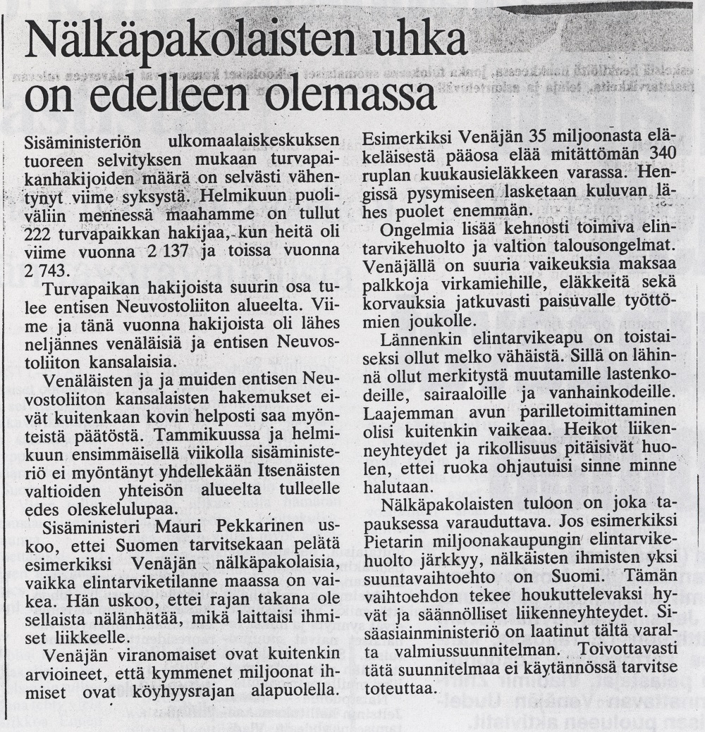 Kuva 8. Helsingin Sanomat 4.9.1992.
