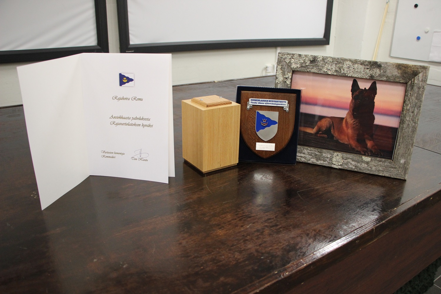 Kuva 21. Rajakoira Remun muistotilaisuus Suomenlahden merivartioston tiloissa kesäkuussa 2017.