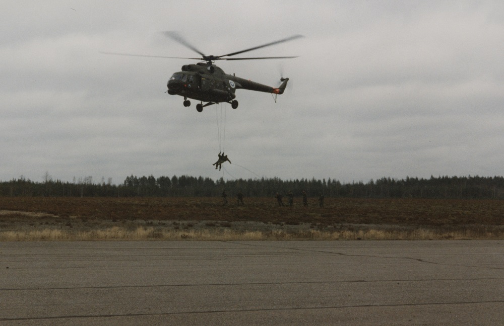 Video 14. Nykypäivänä valmiusjoukkueet harjoittelevat tiiviisti yhteistoimintaa puolustusvoimien NH 90 -helikoptereiden kanssa. Lisäksi harjoituksissa ja operaatioissa voidaan käyttää myös Pasi -kuljetuspanssariajoneuvoja.