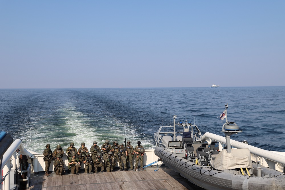 Kuva 26. Rajavartiolaitoksen valmiusjoukkueiden sekä poliisin Valmiusyksikkö Karhun operaattoreita SEAL 2021 -harjoituksessa Itämerellä.